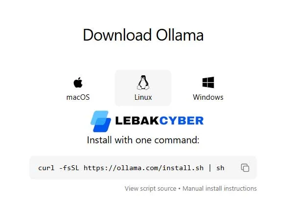 - Pada bagian download kita pilih linux dan klik tombol copy untuk mengcopy perintah untuk menginstall Ollama.