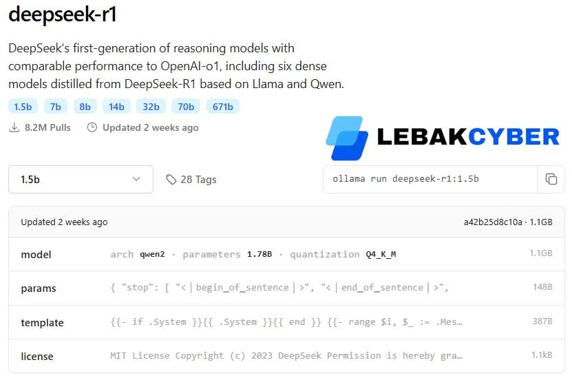 - Pada contoh ini saya memilih model 1.5b karena spek dari hardware yang saya gunakan tidak begitu besar.